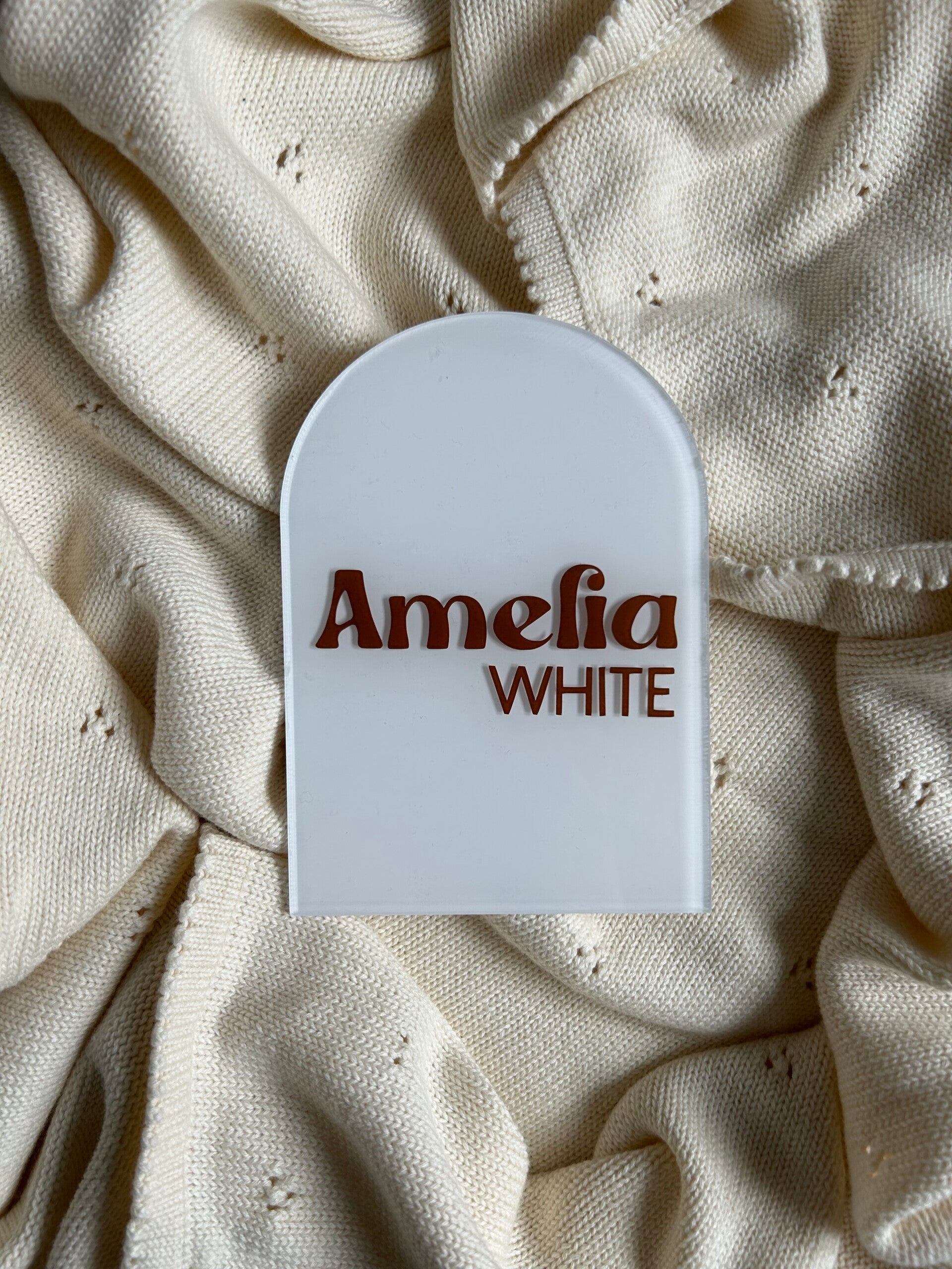 A different take on our name arches with a groovy chic inspired font. Please select wording colour background colour.
