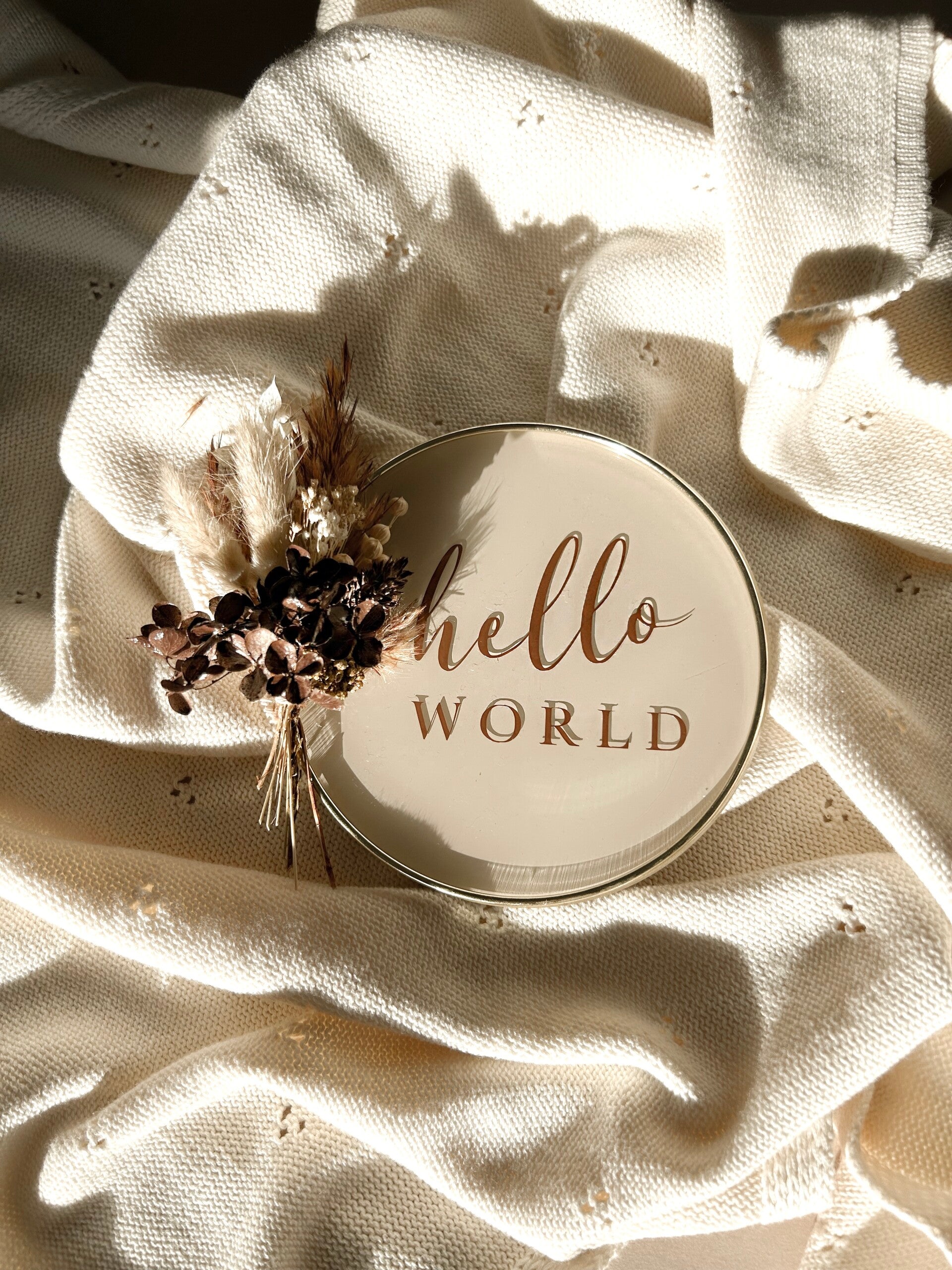 Please add your wording into the text box below. I recommend a max of six words so that it does not look so cramped. The colour background on this hoop is the shade string with brown coloured writing.