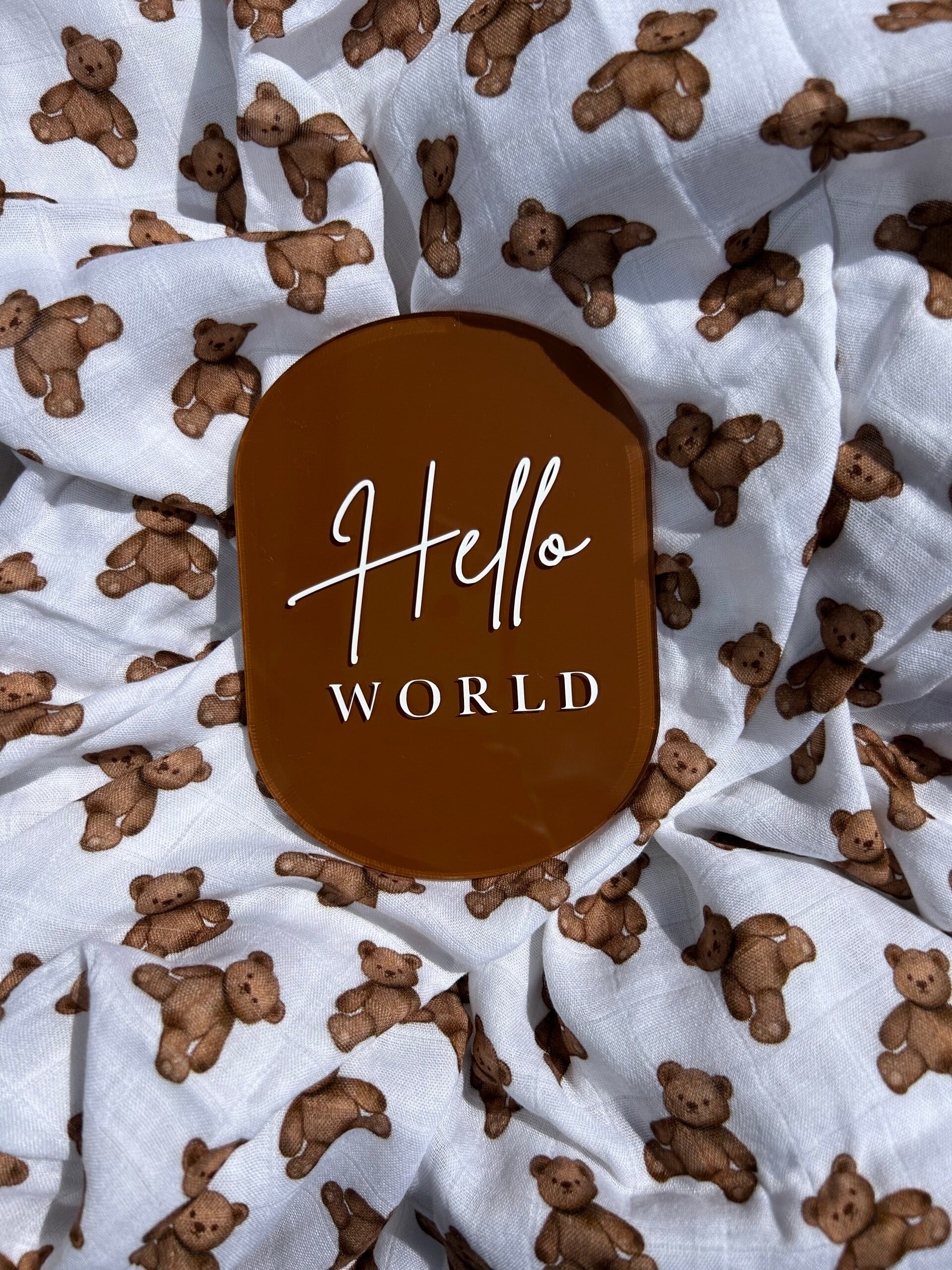 Match our chocolate oblong acrylic plaque with our teddy muslin and chocolate blanket to create the most perfect birth announcement!