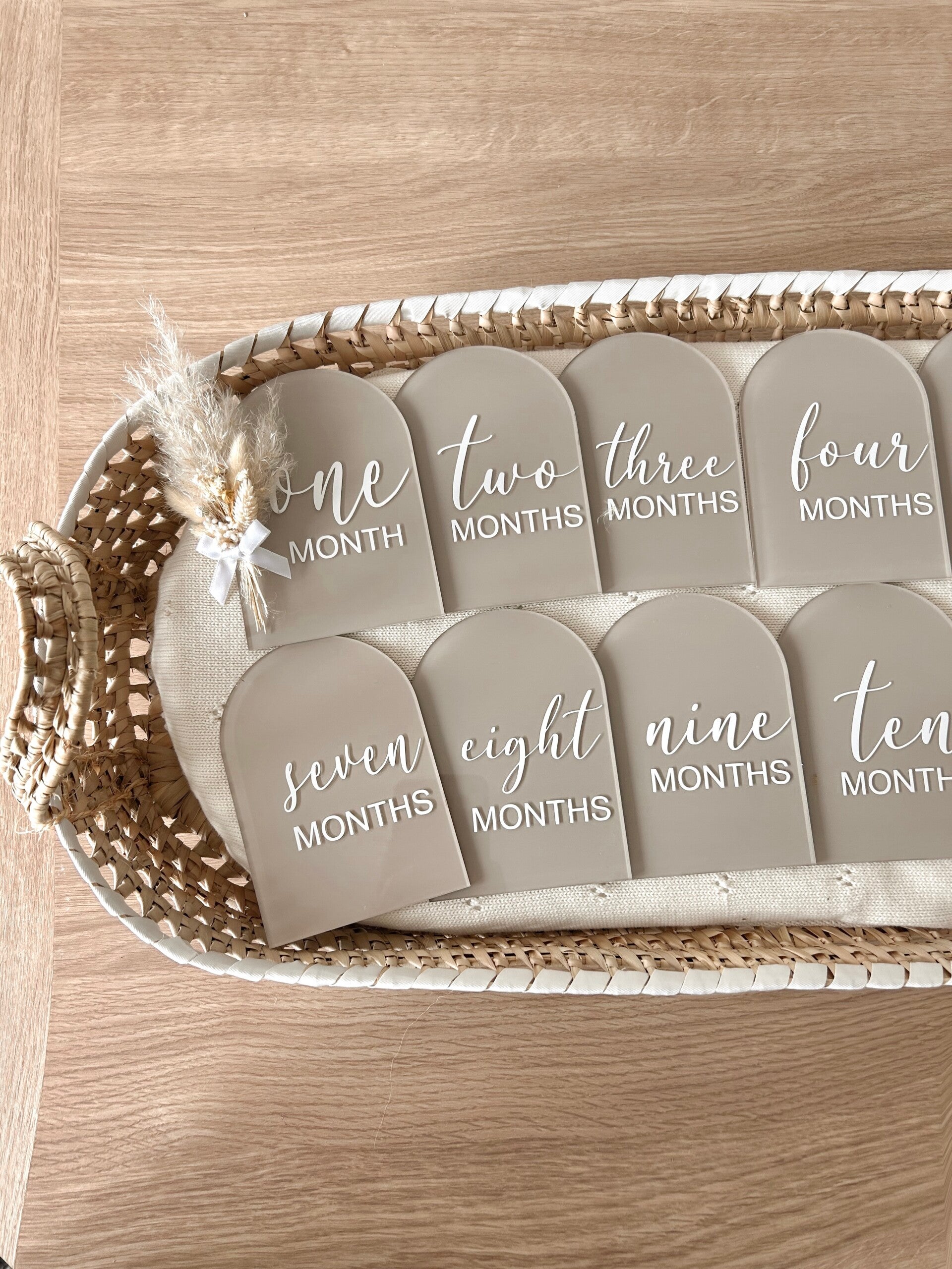 Our arch floral milestone set comes as a set of 12 starting from one month- one years old.
