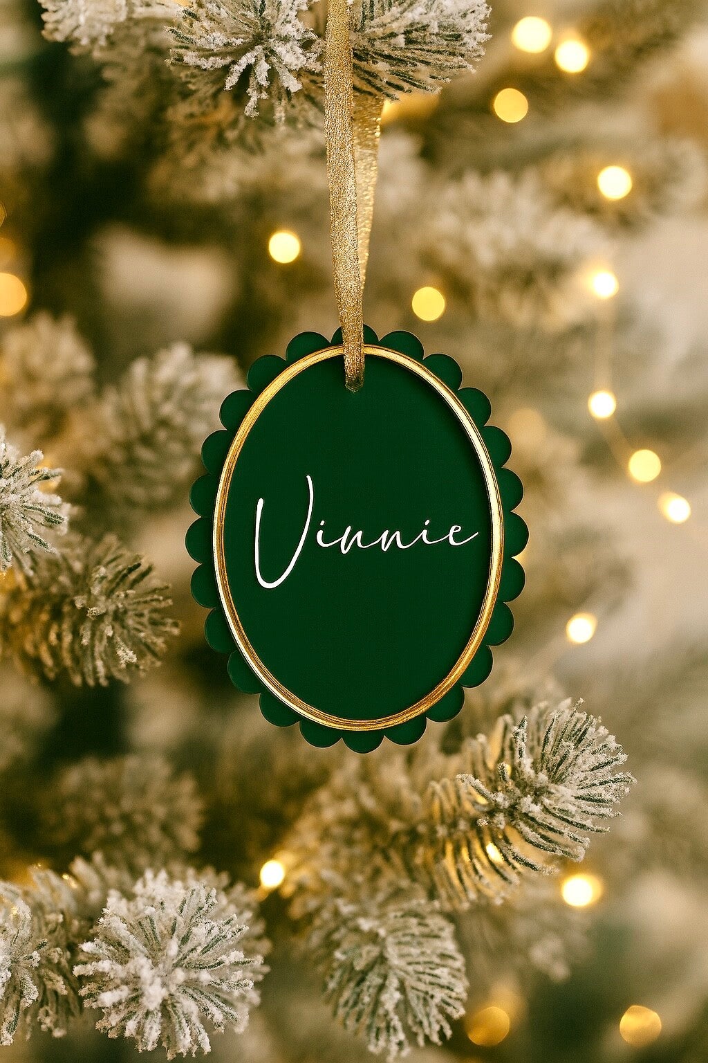 Bring elegance and charm to your Christmas tree with The Scallop Bauble. Measuring approximately 10cm in height, this stunning acrylic ornament features a delicate scalloped edge finished with a gold outline for a timeless festive touch.