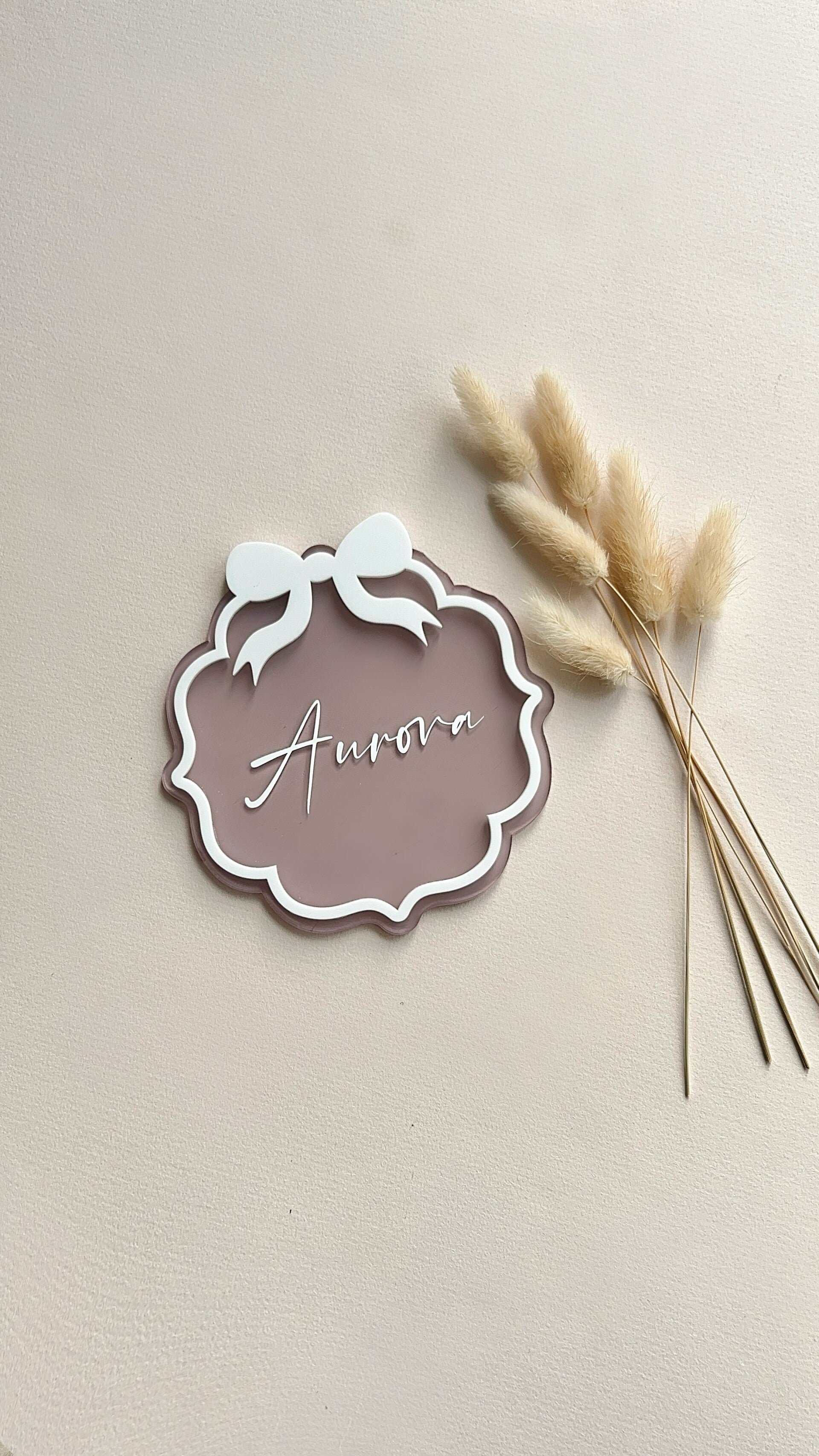 Add a touch of elegance with our custom acrylic plaque, featuring a delicate bow design.