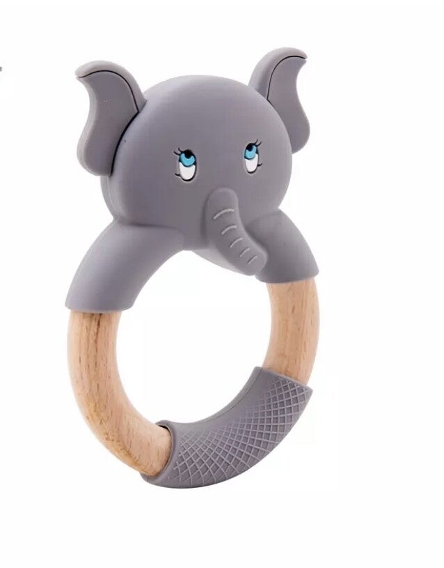 Elephant silicone and wooden teether