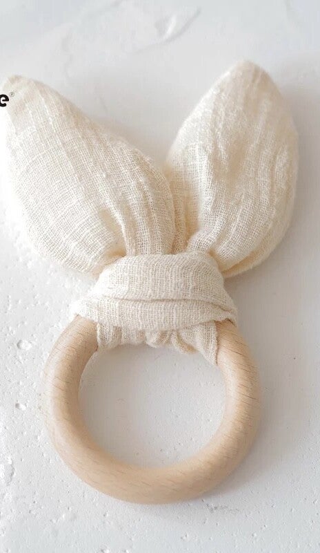 Wooden handle with super soft bunny ears. Crepe tissue inside the ears for a full sensory experience.
