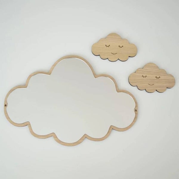 Acrylic mirror with wooden back. Includes string and glue dots to attach to wall.