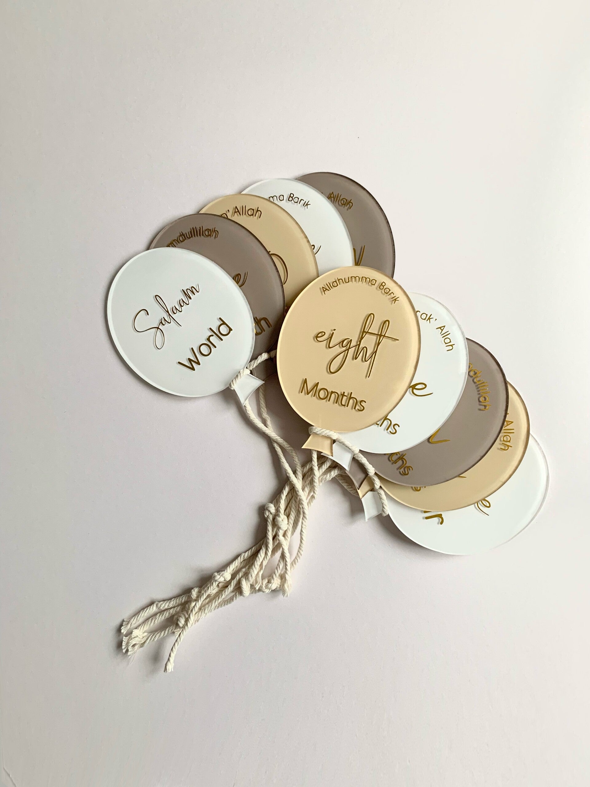 Neutral Islamic balloon set. Includes 13disks.