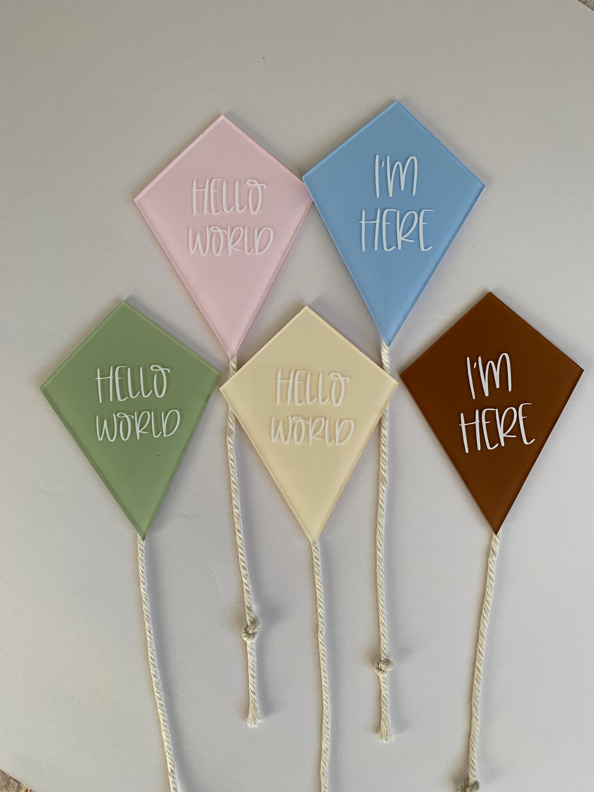 Acrylic milestone kites. Due to the size of the kite, two words only are recommended. Turnaround time is approx 3 weeks.