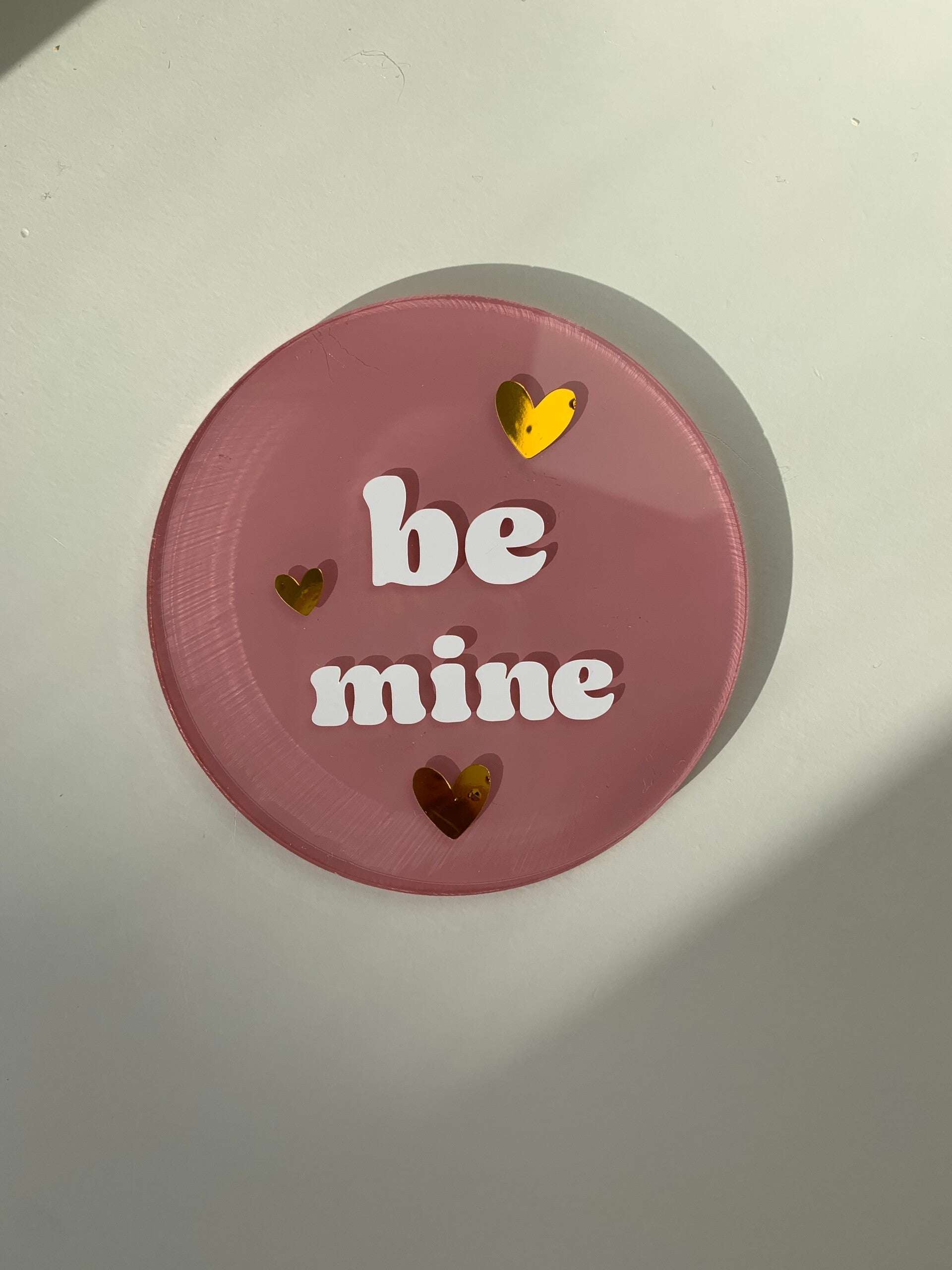 Be mine acrylic plaque. Please put in the colour section what colour background you would like.